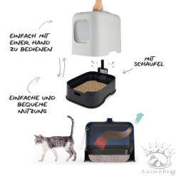 - Contenu de la livraison : 1 bac à litière avec couvercle « Biala » composé d’un bol, d’une hotte, d’une porte et d’une pelle