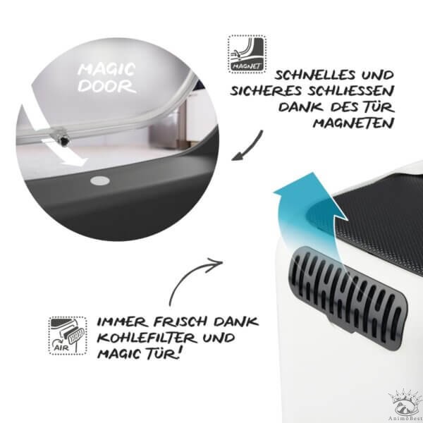 * **Design fermé:** Réduit les projections de litière et les odeurs désagréables pour un environnement plus propre et plus sain.