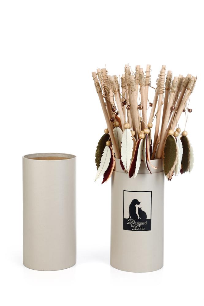 Avec cette canne, vous pouvez jouer avec votre chat. Au bout de la tige, il y a des plumes que votre chat trouvera irrésistibles.
