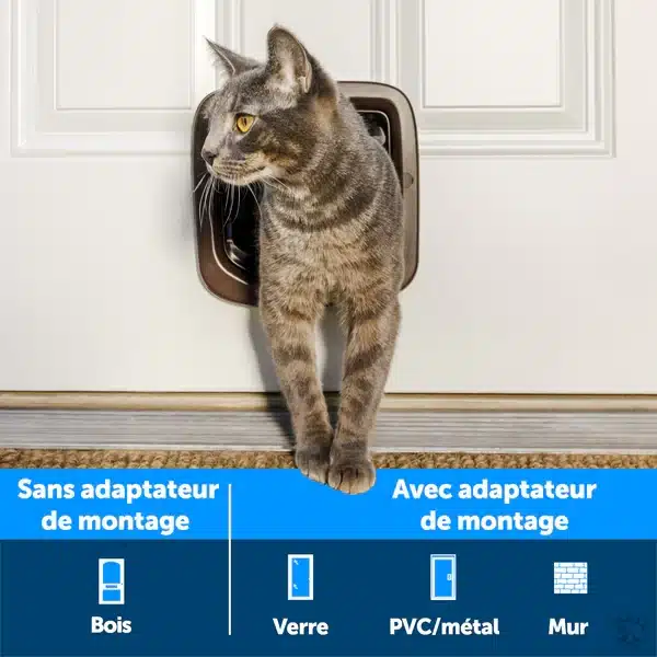 – **Installation facile :** Intégrez rapidement et simplement cette chatière à votre porte, pour un confort immédiat.