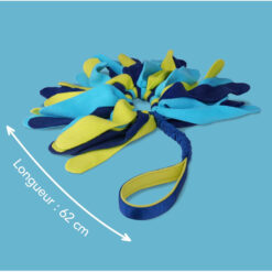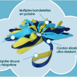 - Doux et confortable Les multiples bandelettes en polaire éveillent la curiosité des chiens, pour encourager l’interaction. Le tissu polaire ultra doux et la poignée élastique assurent le confort de tous les participants, canins ou humains. Idéal pour les chiots, les chiens d’un tempérament doux, et les races dont la gueule est petite.