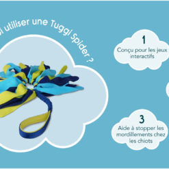 Douce mais résistante, la Tuggi Spider de Coachi est dotée d’un cordon élastique solide avec poignée souple en néoprène. C’est le jouet parfait pour jouer au tir à la corde avec votre toutou, le divertir avec des jeux amusants ou le récompenser lors du dressage au rappel. Il pourra aussi vous aider à mettre fin aux mordillements intempestifs.