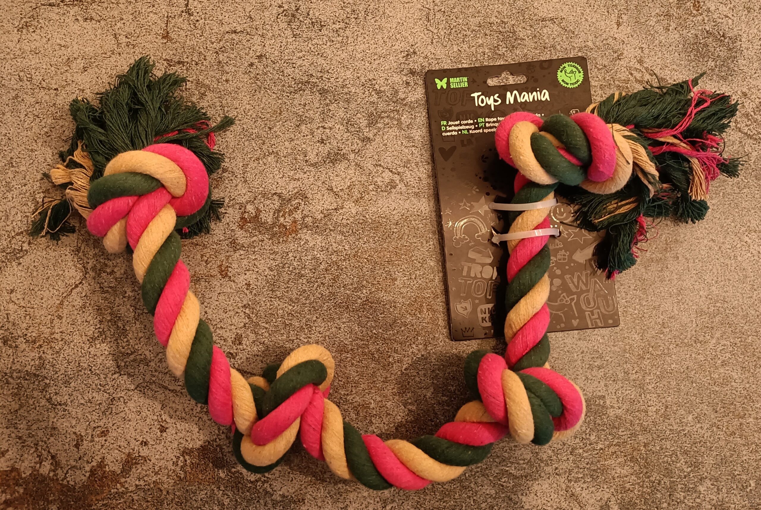 Grande corde tressée avec 4 nœuds. Le jouet idéal pour aller chercher et s’amuser !