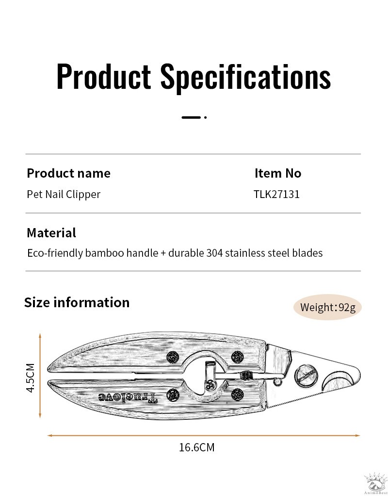 Plus qu’un simple outil, la coupe-griffes Truelove est un gage d’amour et de bien-être pour votre animal. Son design élégant et sa fabrication de qualité supérieure témoignent de notre engagement à fournir des produits fiables et performants pour le bien-être de vos compagnons.