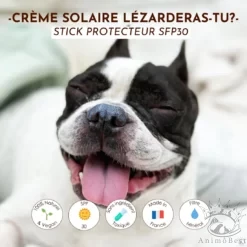 Les rayons UV, même en Suisse, peuvent être nocifs pour la peau sensible de votre animal de compagnie. Avec la crème solaire SPF30 Lézarderas-tu ? Dexter&Mango, offrez-lui une protection solaire efficace et douce, spécialement formulée pour les peaux délicates des chiens et des chats. Sa texture légère et non grasse pénètre rapidement sans laisser de film collant, permettant à votre animal de profiter pleinement de ses jeux et promenades sans inconfort.