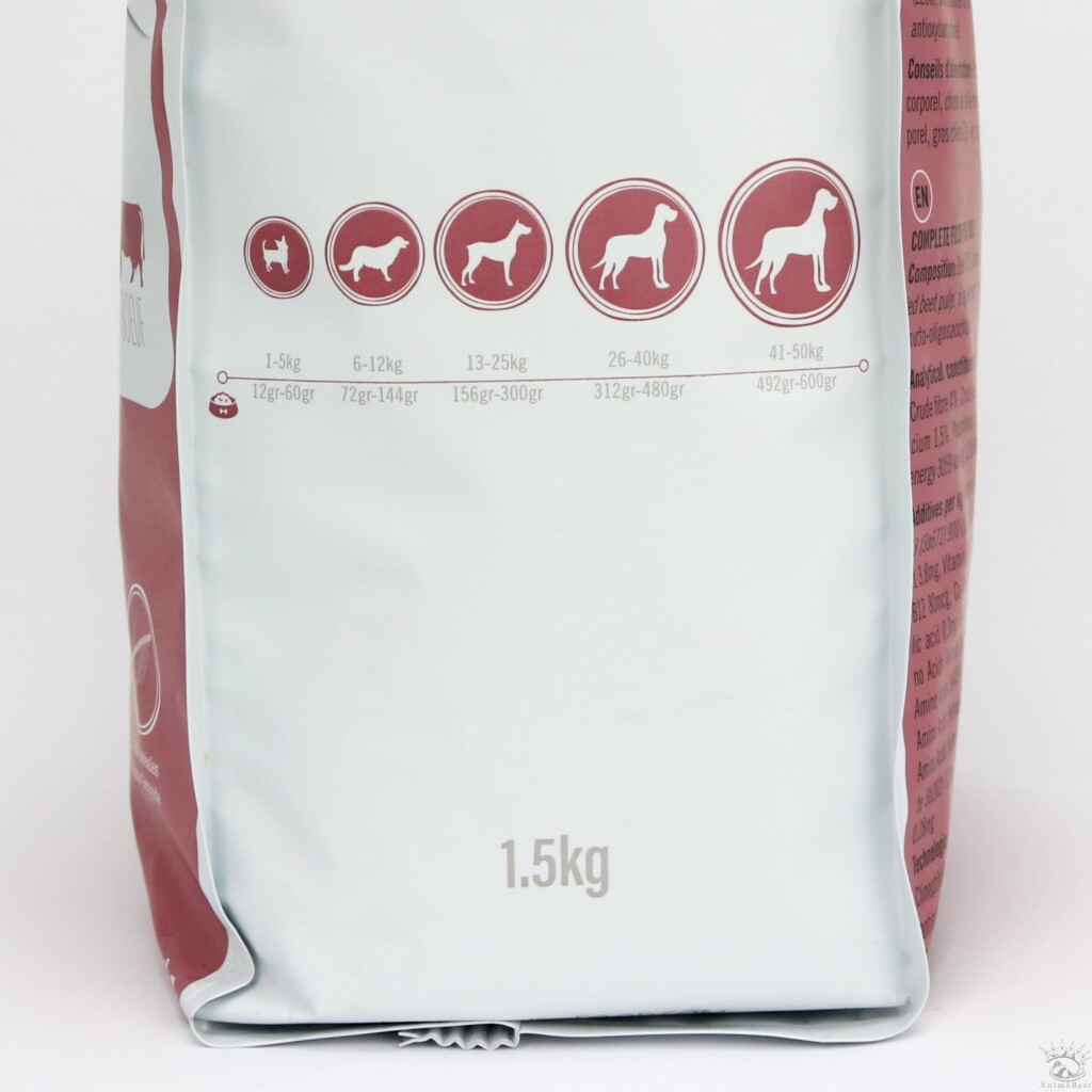 Quantité recommandée : 10 à 15 gr. par kg du chien par jour.