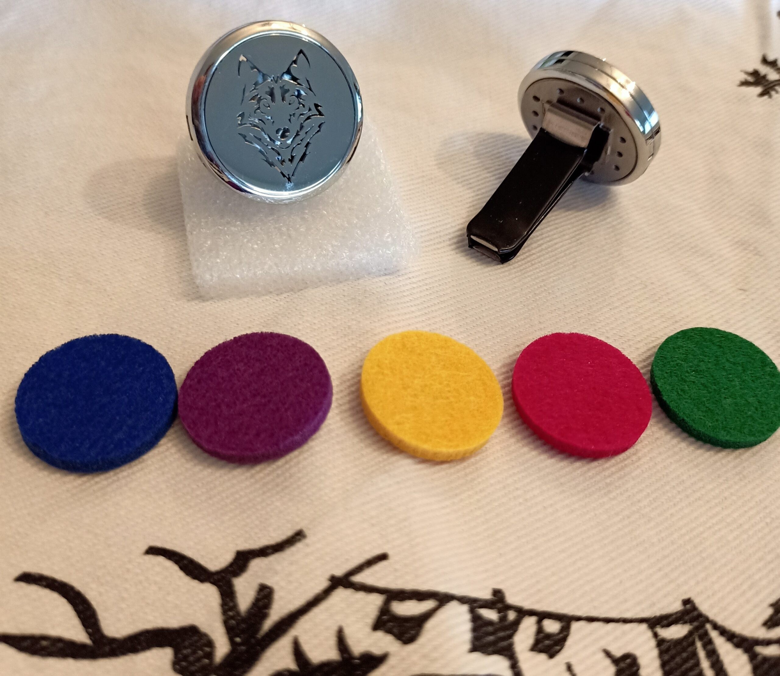 5 buvards de différentes couleurs fournis, ce qui permet de changer d’huiles essentielles ou de senteurs facilement.