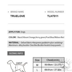 Le harnais Truelove Escape Proof est fabriqué en tissu Oxford de haute qualité avec un rembourrage en néoprène, ce qui le rend à la fois doux pour la peau et durable. La sangle en nylon souple est dotée de bandes réfléchissantes 3M pour offrir une résistance et une durabilité optimales pour une utilisation quotidienne. Les attaches légères en aluminium sur les sangles permettent une mise en place et une prise en main plus pratiques.