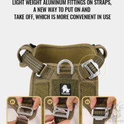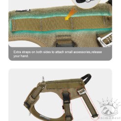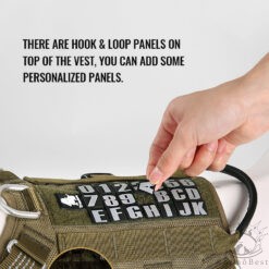 Ce harnais dispose également d’une sangle abdominale supplémentaire pour un soutien corporel complet, appliquant une pression de traction uniforme sur le corps du chien pour éviter tout risque d’étranglement. Il est également équipé de panneaux en boucle et crochet sur le dessus du gilet pour permettre l’ajout de panneaux personnalisés.