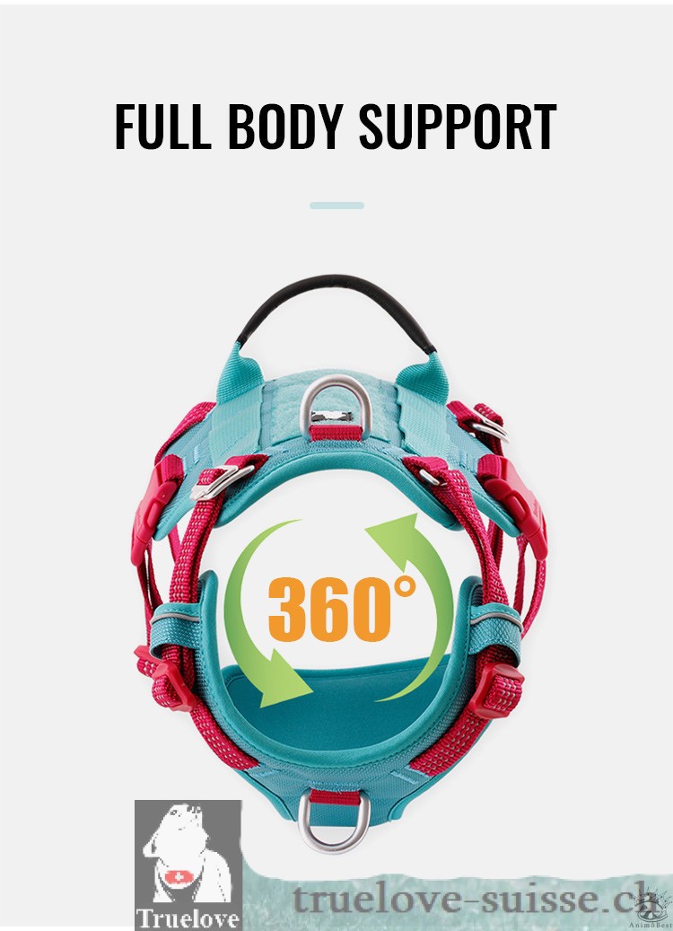 Des sangles supplémentaires sont également présentes des deux côtés pour permettre l’attache de pochettes ou de LED pour une meilleure visibilité. En somme, le harnais Truelove Escape Proof est un équipement de qualité pour assurer le confort et la sécurité de votre animal de compagnie lors de vos sorties en extérieur.