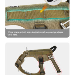 Ce harnais dispose également d’une sangle abdominale supplémentaire pour un soutien corporel complet, appliquant une pression de traction uniforme sur le corps du chien pour éviter tout risque d’étranglement. Il est également équipé de panneaux en boucle et crochet sur le dessus du gilet pour permettre l’ajout de panneaux personnalisés.