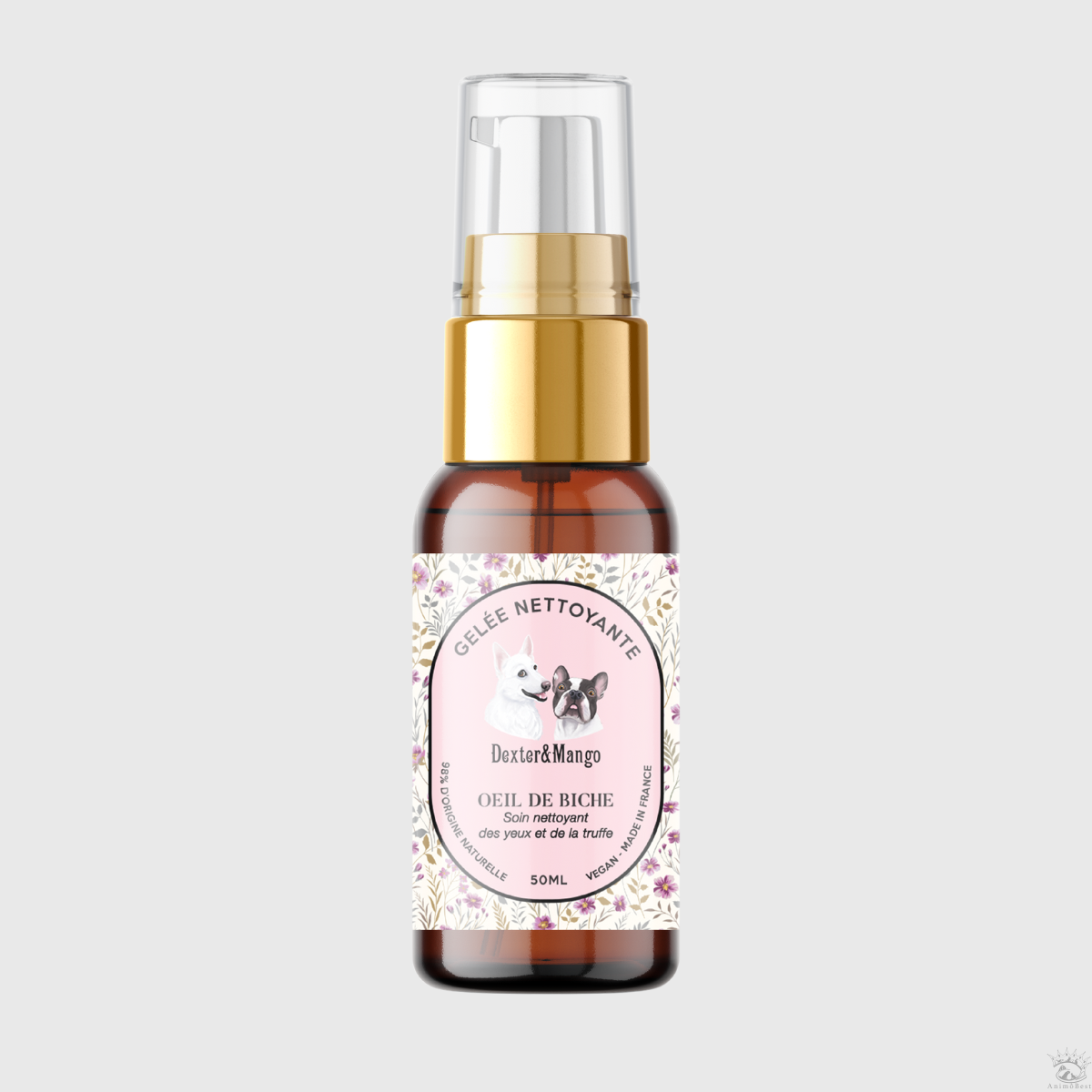 Nettoyante, rafraichissante, hydratante, apaisante, protectrice…La gelée Œil de biche va permettre de nettoyer efficacement et tout en douceur les yeux et la truffe de votre chien. Elle élimine les croûtes, saletés et impuretés autour des yeux et de la truffe.