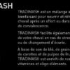avoine, caroube, tourteau de lin, mélasse, minéraux, prémélanges de vitamines et oligo-éléments, acides aminés, fructo-oligosaccharides