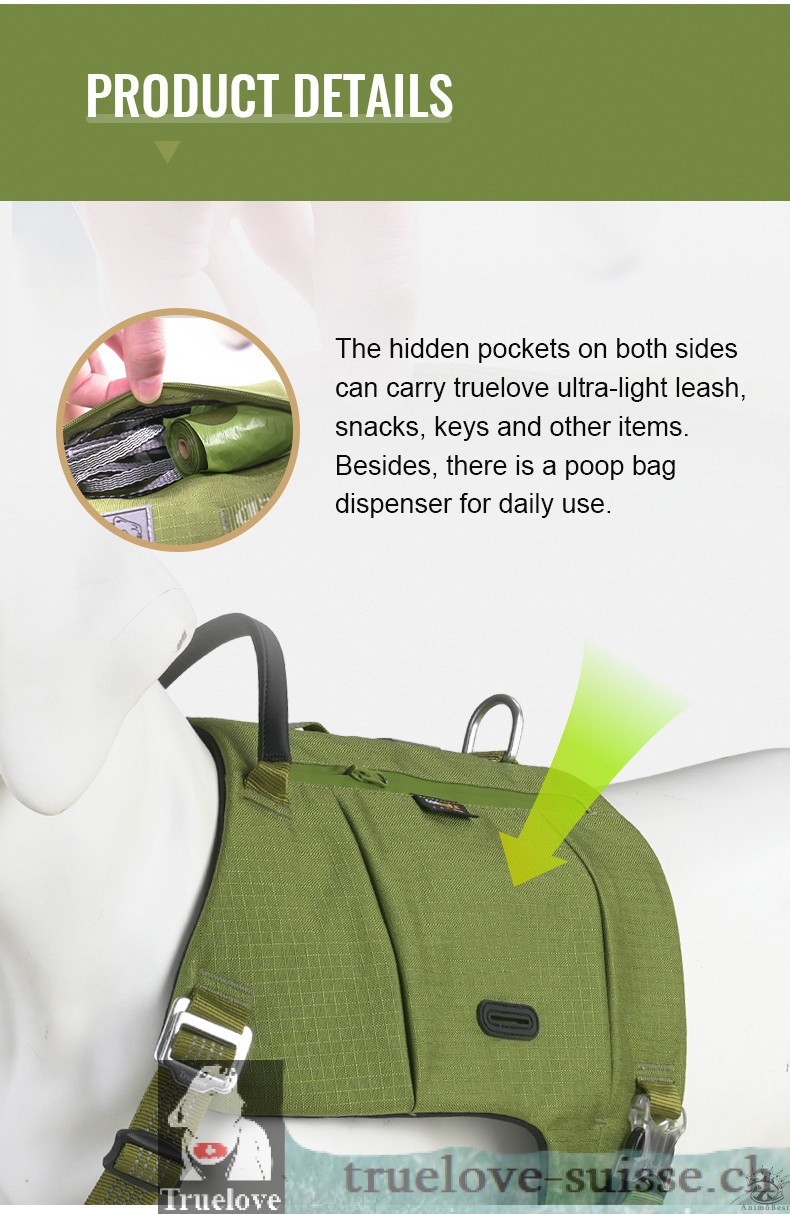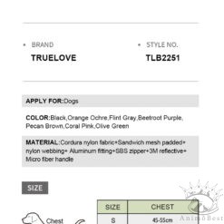 Le harnais Backpacker Truelove est conçu pour offrir un confort et une sécurité optimaux à votre chien lors de vos aventures en plein air. Fabriqué en tissu nylon DuPont léger, respirant et résistant aux déchirures, il est également résistant à la décoloration et durable. Les éléments réfléchissants en nylon 3M assurent la sécurité de votre chien lors de promenades nocturnes, tandis que la poignée en microfibre renforcée aide à mieux contrôler les mouvements de votre chien et garantit sa sécurité. La boucle au niveau du cou, fabriquée en alliage d’aluminium léger et durable, vous permet de mettre et d’enlever facilement le harnais sans avoir besoin de passer la tête de votre chien. En ajustant les cinq boucles des sangles, vous pouvez personnaliser l’ajustement pour un confort optimal. Les boucles Duraflex, une marque de renommée mondiale d’accessoires en plastique pour les sacs à dos et les équipements de montagne, assurent une résistance et une durabilité optimales. Les poches cachées des deux côtés peuvent contenir la laisse ultra-légère Truelove, des collations, des clés et d’autres objets. En outre, il y a une sortie PVC séparée pour un accès facile aux sacs à déchets.