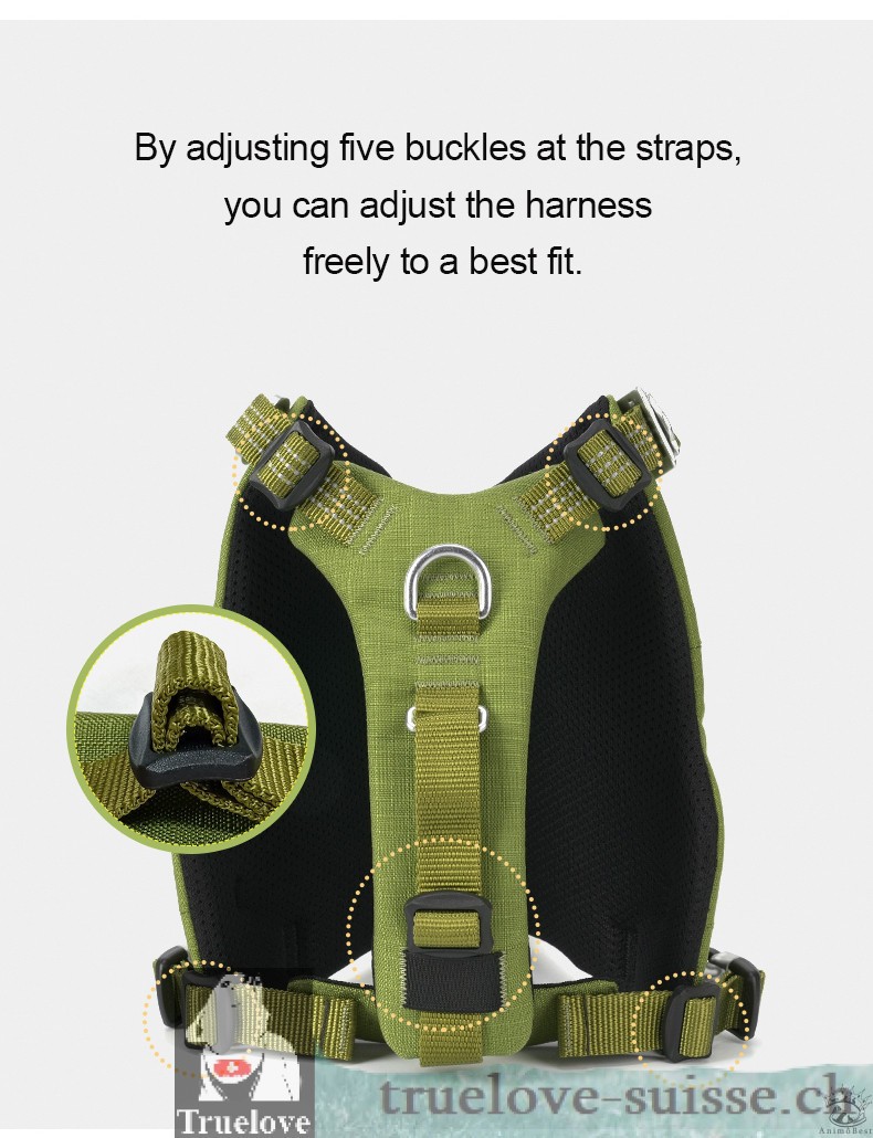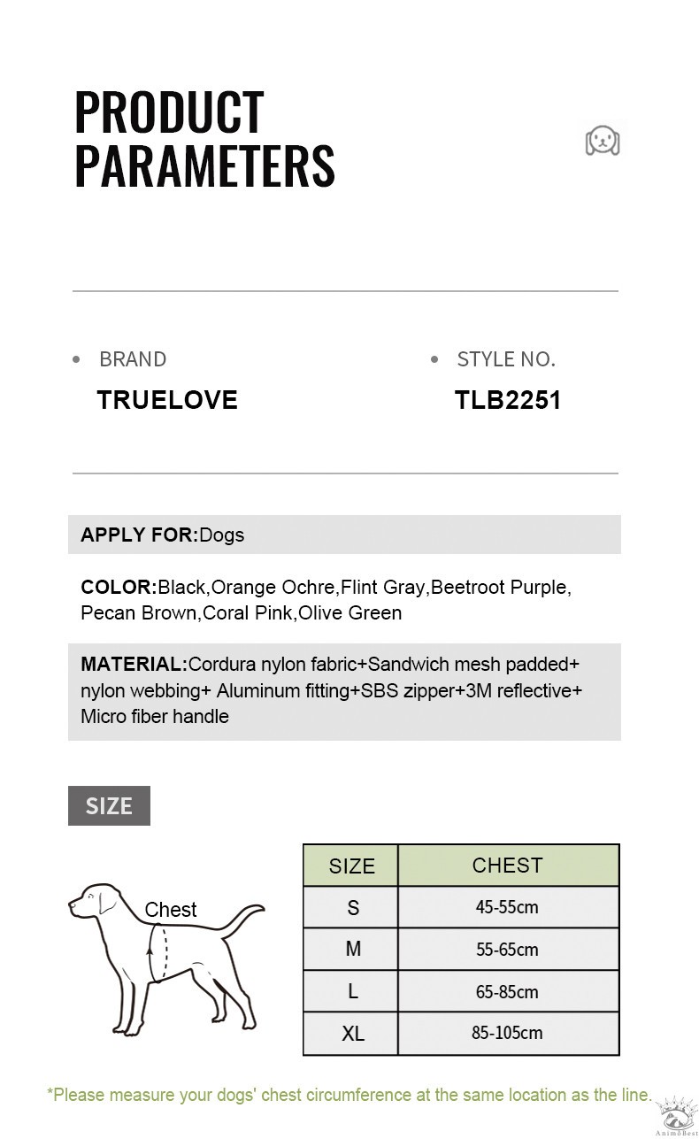 Le harnais Backpacker Truelove est conçu pour offrir un confort et une sécurité optimaux à votre chien lors de vos aventures en plein air. Fabriqué en tissu nylon DuPont léger, respirant et résistant aux déchirures, il est également résistant à la décoloration et durable. Les éléments réfléchissants en nylon 3M assurent la sécurité de votre chien lors de promenades nocturnes, tandis que la poignée en microfibre renforcée aide à mieux contrôler les mouvements de votre chien et garantit sa sécurité.