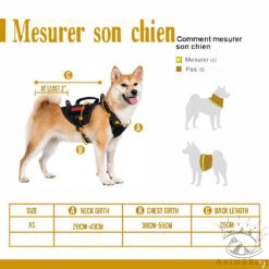 Il a des points de fixation à double laisse à l’avant et à l’arrière, et une poignée supérieure renforcée pour soulever le chiot en cas de besoin.