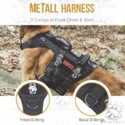 Harnais tactique à boucle entièrement métallique de l’équipe 1tg, avec une construction en nylon robuste 1000D et du matériel métallique testé, un ajustement spécialement conçu qui ne limite pas le mouvement des épaules et des pattes avant. Il dispose de 2 poignées perpendiculaires robustes pour un contrôle canin efficace et pour offrir une aide à la mobilité temporaire telle que monter et descendre des voitures. Le système MOLLE permet la fixation de pochettes EDC et d’autres articles nécessaires, et les 3 anneaux en D en acier inoxydable donnent au propriétaire diverses options de fixation de la laisse telles que les longues laisses à l’arrière pour les randonnées et les courses, ainsi qu’à l’avant pour l’entraînement sans traction et marche dans des zones plus fréquentées. Le harnais en métal K9 se révélera être idéal et polyvalent pour toute mission.