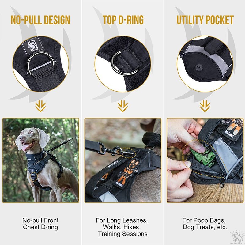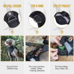 Equipement pour chien OneTigris avec sangle à boucle des deux côtés, compatible modules complémentaires MOLLE. Possibilité de mettre des patchs. Dispose de bandes réfléchissantes pour les aventures en plein air et les promenades nocturnes.