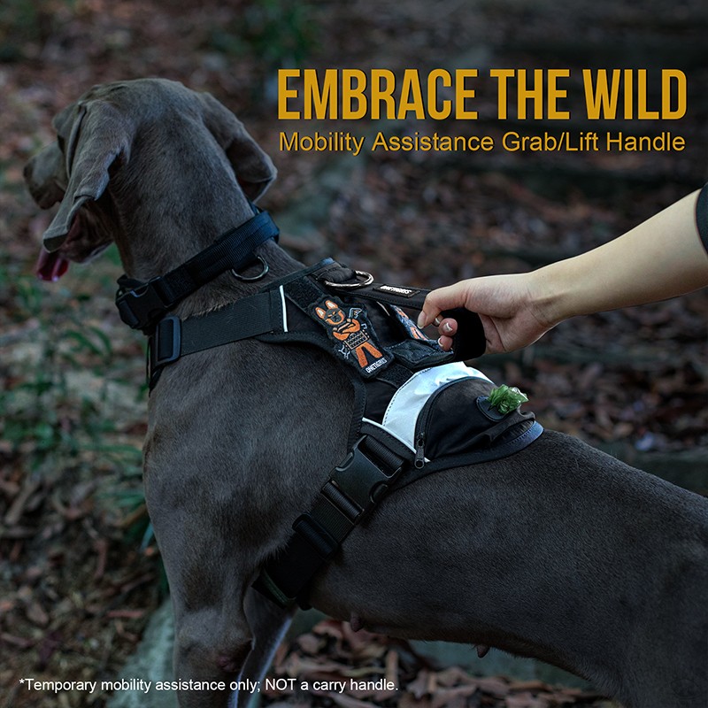 Le GROVER est un harnais tout-en-un pour les promenades, les courses, les randonnées et plus encore. Il est léger, respirant et conçu de manière ergonomique pour épouser le torse canin sans gêner les mouvements de l’épaule qui peuvent causer des frottements ou de l’inconfort. Doté d’un tissu en nylon robuste 420D avec doublure en maille, d’un rembourrage en mousse EVA, de boucles UTX-Duraflex® robustes et de 2 anneaux en D en acier inoxydable, y compris l’option de fixation sans traction sur la poitrine avant. La poignée verticale supérieure est utile pour soulever votre chien dans/hors des voitures et il y a une poche zippée avec une sortie pour sac à crottes qui peut également contenir des friandises pour chien ou d’autres petits objets.