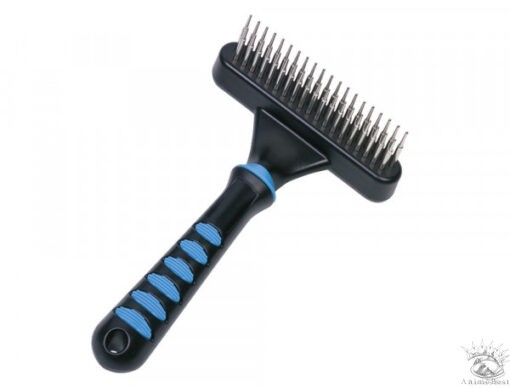 Cette étrille démêlante de la série « Comfortline » est particulièrement adaptée au soin des poils longs et épais ainsi qu’aux chiens sensibles. Les 39 longues dents rotatives réparties sur deux rangées s’adaptent à la pression du peignage et sont donc particulièrement douces et douces. Cette étrille permet d’enlever le sous-poil en douceur. Cela garde le pelage sain et souple. La poignée en plastique tient bien et confortablement dans la main et assure un brossage confortable.