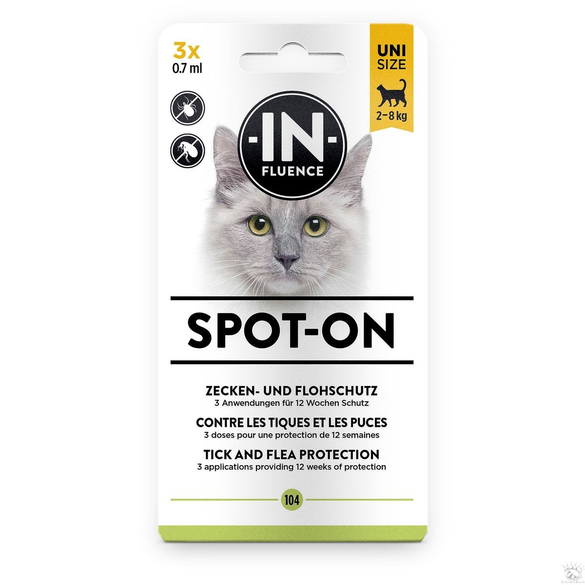 Spot-on convient pour les chats de 2 à 8kg. 3 ingrédients répulsifs actifs: icaridine, huile d’eucalyptus citriodora et géraniol, formulés de façon novatrice et combinés avec l’huile de noix de coco précieuse, protègent de manière fiable votre chat contre les tiques et les puces. Appliquez toutes les 2-4 semaines, un emballage complet offre jusqu’à 12 semaines de protection.