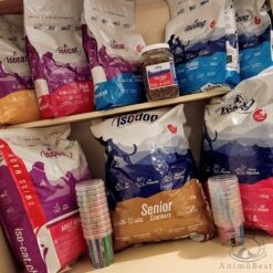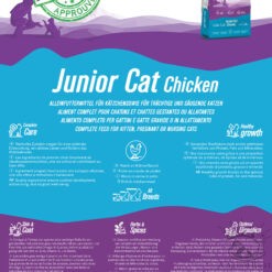 Composition : Viande de volaille déshydratée (min. 36% = 75% de viande fraîche), riz, graisse de volaille, maïs, protéine de maïs, protéines de pomme de terre, graines de lin extrudées (3.5%), marc de pomme, levure de bière, huile de saumon (1%), mélange d’épices (curcuma 1.3g/kg, genièvre 1.2g/kg, coriandre 900mg/kg, cerfeuil 500mg/kg, thé vert 500mg/kg), manno-oligosaccharides (0.2%), fructooligosaccharides (0.1%).