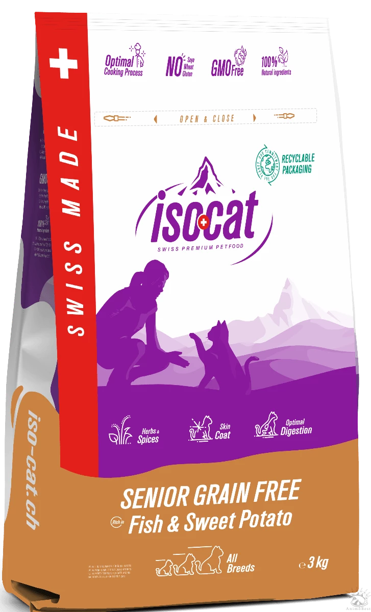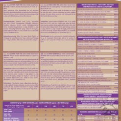 Composition : Farine de poisson déshydratée (min. 25,0%), patate douce (min. 20,0%), petits pois, creton de porc, graisse de volaille, marc de pomme, pommes de terre, graines de lin, levure de bière, huile de saumon, fructo-oligosaccharides (0,5%), épice mélange, (curcuma 1,3 g/kg, genévrier 1,2 g/kg, coriandre 900 mg/kg, cerfeuil 500 mg/kg, thé vert 500 mg/kg), mannan-oligosaccharides (0,2%), extraits de yucca (0,02%), glucosamine (0,02 %), chondroïtine (0,01 %).