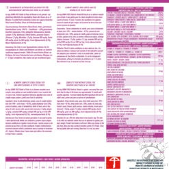 Constituants analytiques : Protéines brutes 30,0%, Matières grasses brutes 17,0%, Cendres brutes 7,7%, Cellulose brute 2,8%, Acides gras oméga-6 2,5%, Acides gras oméga-3 0,8%, Calcium 1,4%, Phosphore 0,9%, Inuline 0,1%, Bêta-glucane 250 mg/kg.