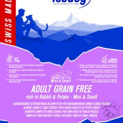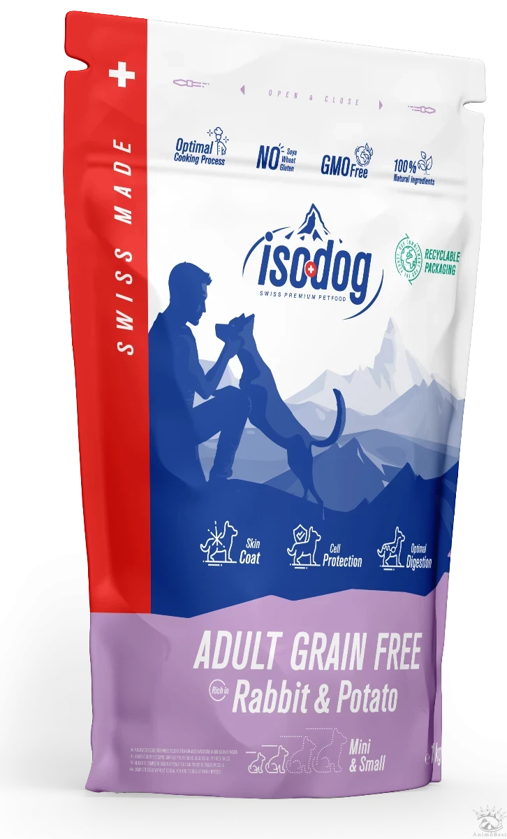 Iso-dog GRAIN FREE Rabbit & Potato Mini & Small est un aliment complet sans céréales et sans gluten pour les chiens sensibles de petites races jusqu’à 10 kg et à partir de 12 mois. Il contient des ingrédients très digestes comme la viande de lapin, les pois et la pomme de terre comme sources de glucides.