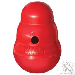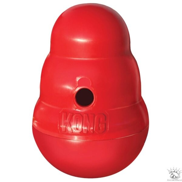 Le Wobbler™ de KONG est un jouet plein d’action que tu peux remplir de friandises et utiliser comme distributeur de nourriture stimulant. Le jouet à la forme typique de KONG se tient debout jusqu’à ce que ton chien le pousse avec sa patte ou son museau. Il roule alors sur le sol et tourne en libérant de délicieuses récompenses par un trou. Le tourbillon imprévisible du wobbler stimule les instincts naturels de ton chien et captive même le plus rusé des quadrupèdes.
