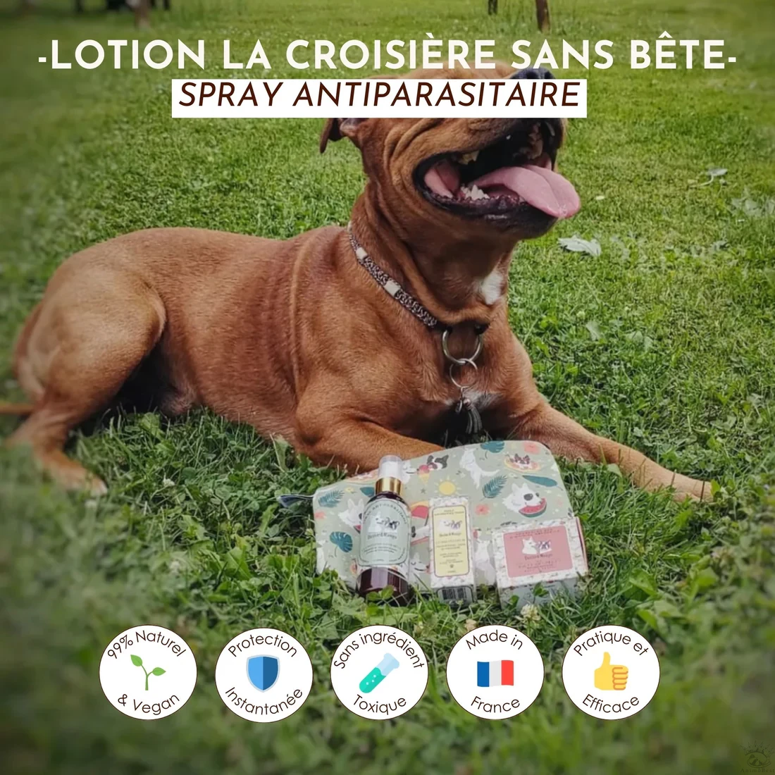 Cette lotion 100% d’origine naturelle offre une protection immédiate et durable contre les puces, tiques, moustiques et aoûtats, permettant à votre chien de profiter pleinement de vos aventures en plein air.