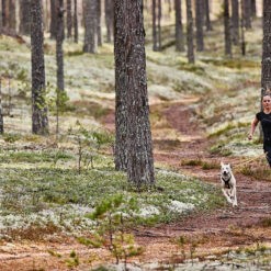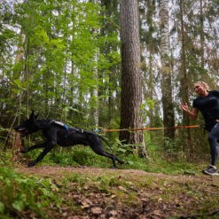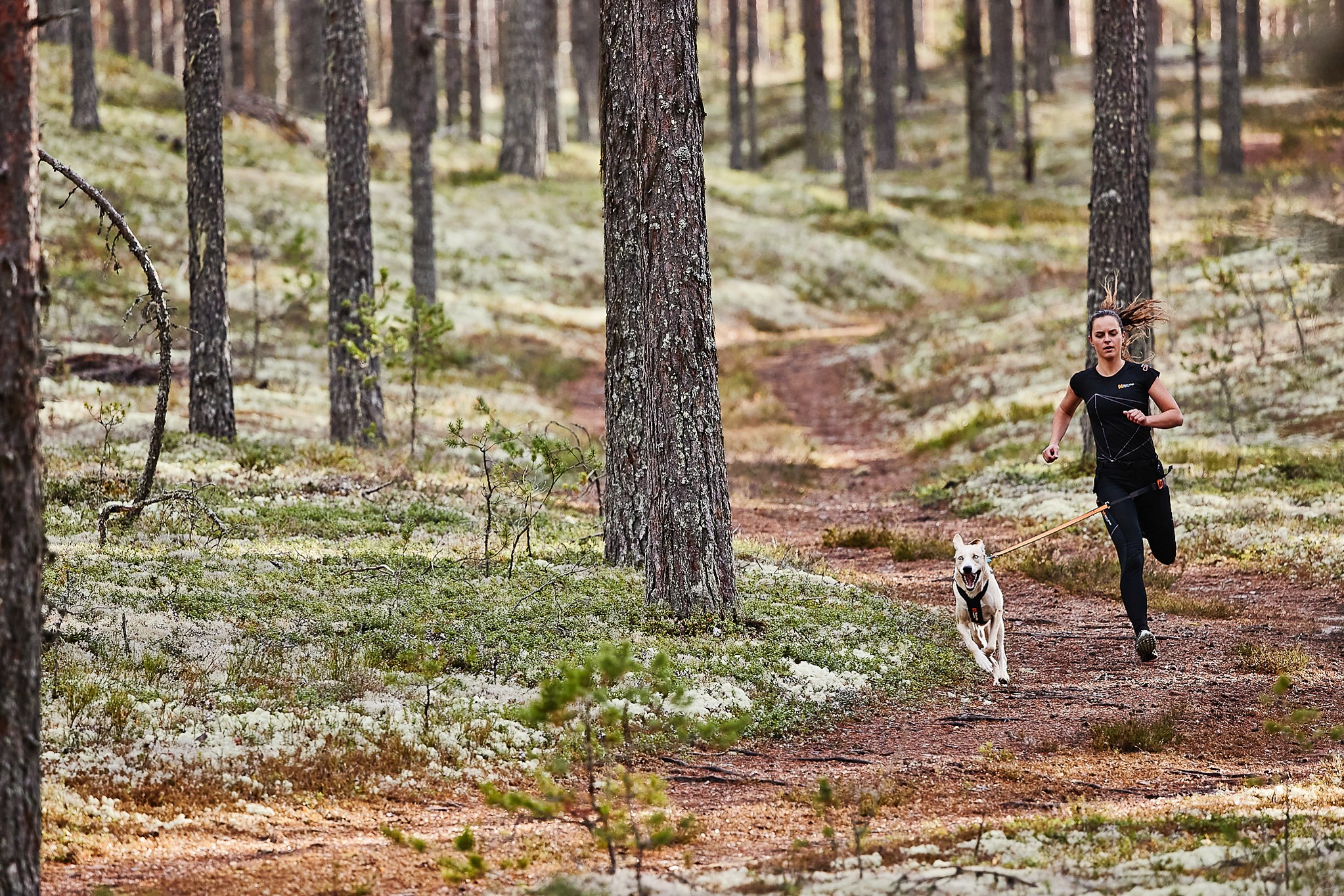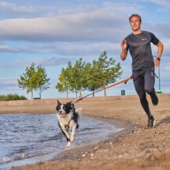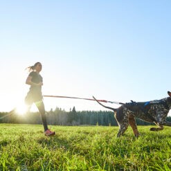La Non-stop dogwear Bungee leash a été conçue pour la pratique de la course à pied, du VTT et du ski avec des chiens. La laisse est entièrement élastique.