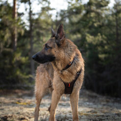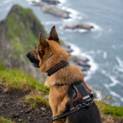 Le harnais possède une poignée à l’arrière pour un contrôle supplémentaire. Le Rock harness est réglable au niveau du cou et de la poitrine. Les zones exposées à l’usure sont renforcées avec de l’Hypalon. Bandes réfléchissantes 3M™.