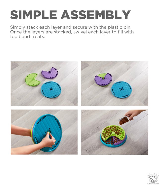 Le Puppy Lickin’ Layers est un jeu de puzzle pour chien et un distributeur de nourriture en un seul produit, conçu pour les chiots et les petits chiens. Il est fabriqué à partir de matériaux sans BPA, PVC et phtalates, et il est facile à remplir, à nettoyer et à démonter. Le Puppy Lickin’ Layers comporte 70 compartiments à friandises répartis sur trois niveaux. Les chiens doivent faire tourner les niveaux pour révéler les friandises, ce qui les stimule mentalement et les aide à se calmer. Le Puppy Lickin’ Layers peut également être utilisé comme distributeur de nourriture pour ralentir les repas et encourager une alimentation plus saine. Il est parfait pour les croquettes, les friandises, les aliments humides et les aliments crus.