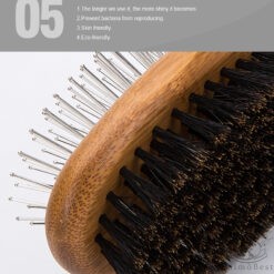 - Poils de sanglier naturels : distribuent des huiles naturelles, laissant la fourrure brillante et saine. Élimine l’électricité statique et prévient les dommages aux cheveux.